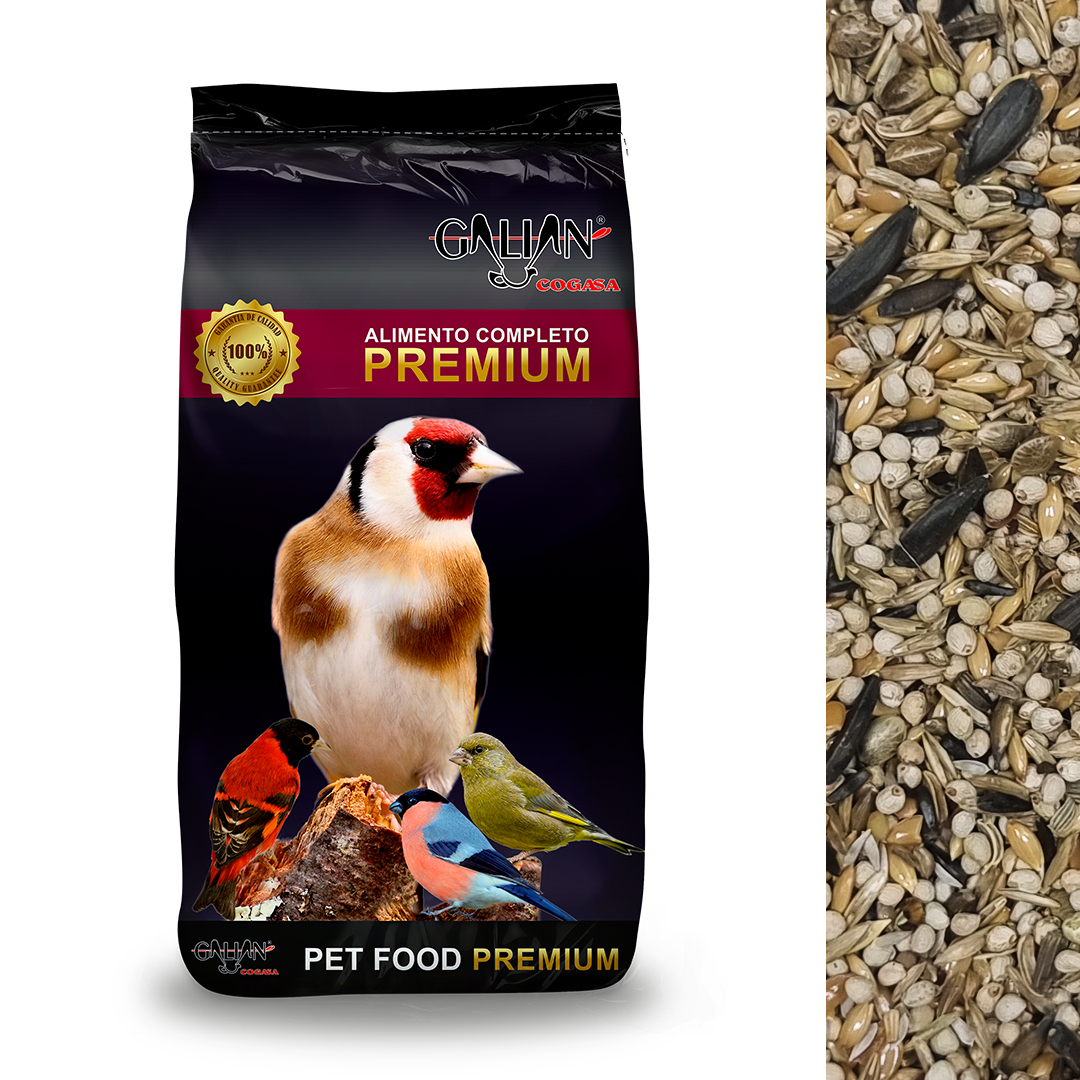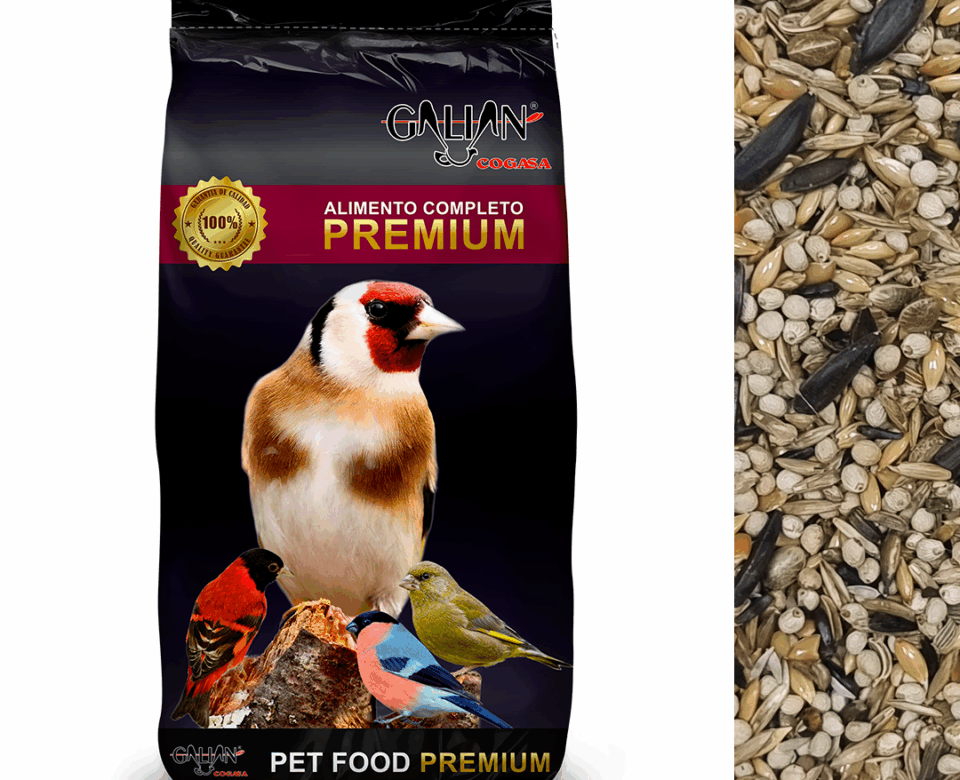 Vezas, sorgo blanco, guisantes, yeros, sorgo, mijo (perlado-panicillo), semillas de alpiste, mijo (blanco), semilla de cártamo, frijol mungo, avena descascarada, semilla de lino, semillas de girasol negra, semillas de cáñamo y gránulo para palomas.
